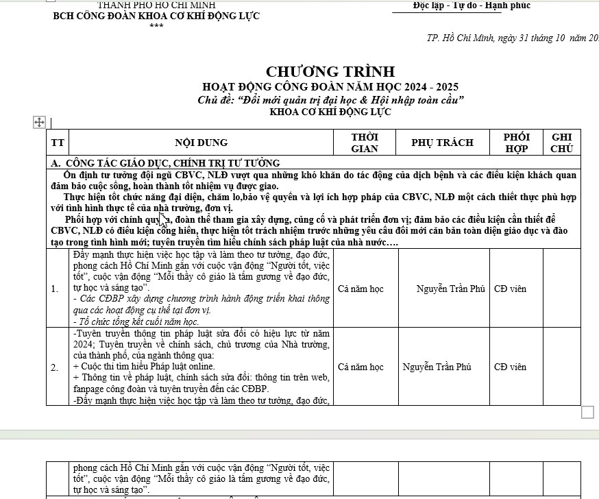 2. Vận động 100% CĐV thực hiện tốt 2 cuộc vận động lớn của ngành. - "Mỗi thầy cô giáo, CBVC là một tấm gương sáng về tinh thần tự học, sáng tạo" và "Dân chủ - Kỷ cương - Tình thương - Trách nhiệm".